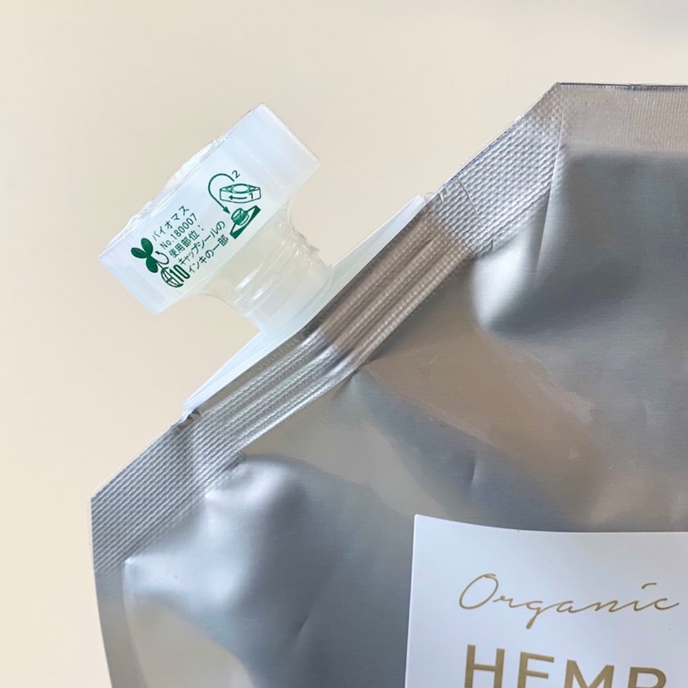 HEMPSでは、循環を目指した商品づくりを心がけています。環境負荷が少ない包材で、「たくさんの人々の健康づくりに役立てたいと考えたとき、従来のオイル容器ではなくても使いやすくて品質が保てる形状は何だろう?」そう考え、プラスチックボトルやガラス瓶に比べて、きわめて軽量で使い終わればペタンコになるアルミパウチ袋を採用しました。自宅のオイルボトルの詰替え用としてもご利用いただけます。