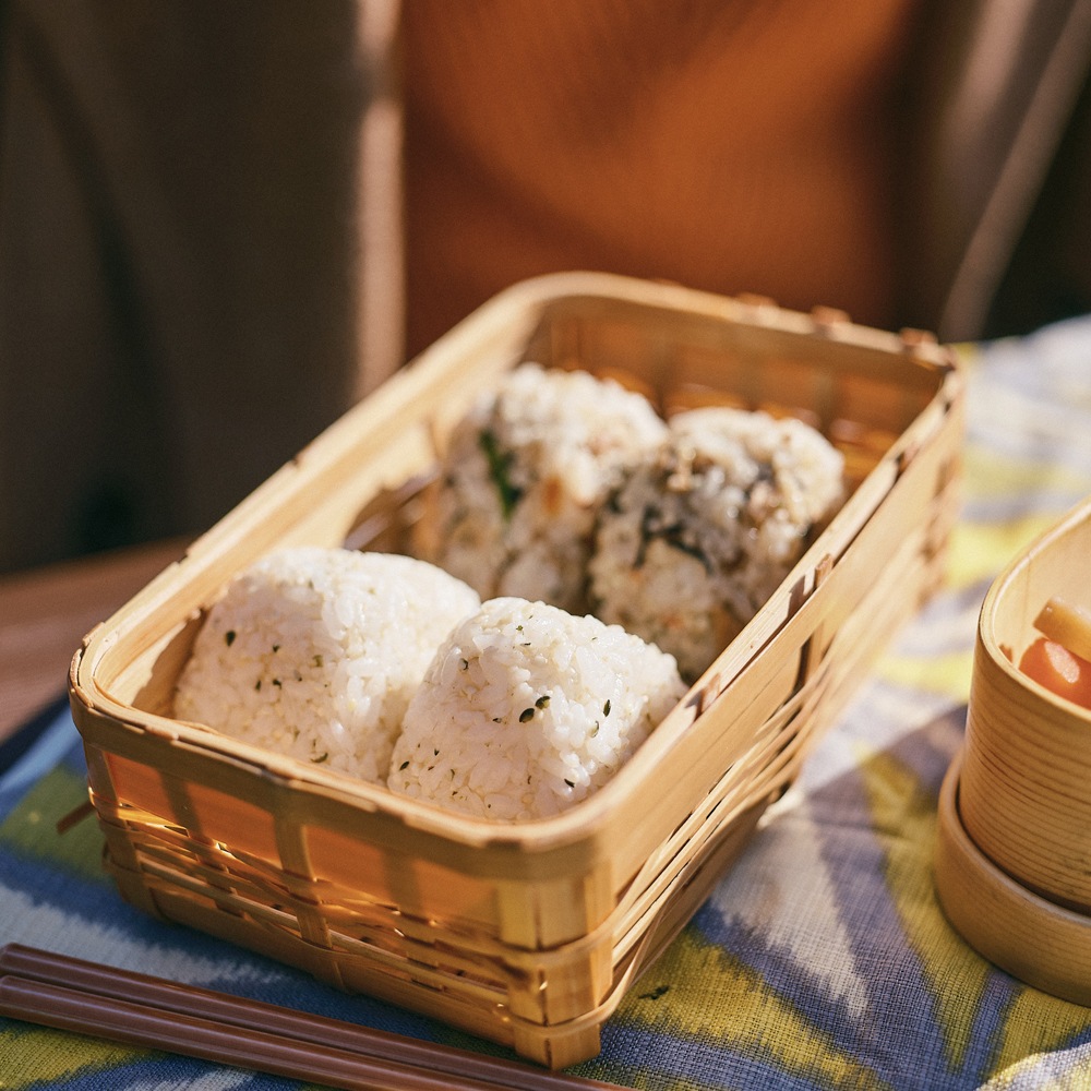 炊き上がったご飯に、ヘンシード約20g(大さじ2)、塩をよく混ぜてむすびます。