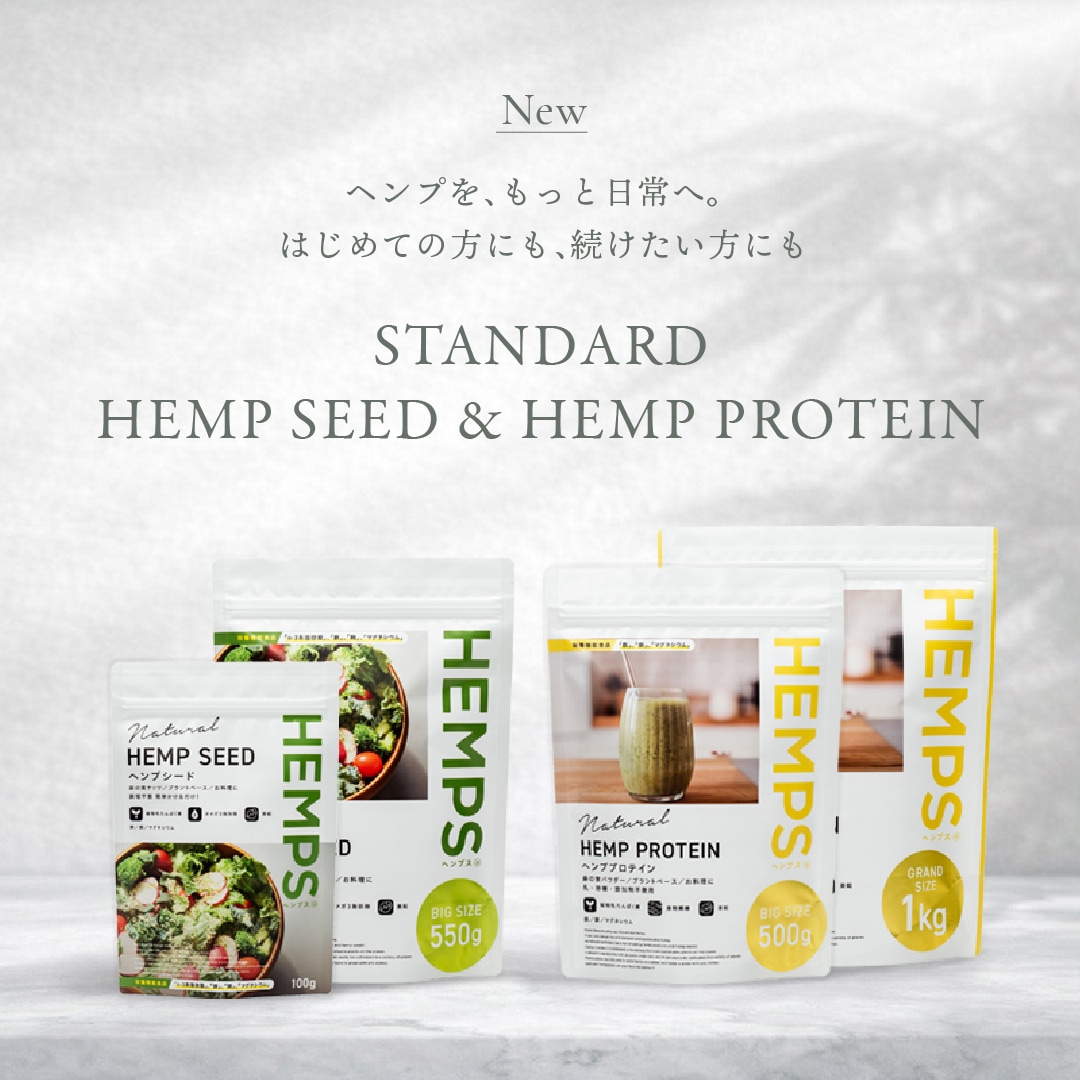 HEMPSでは、これまで展開してきたオーガニックシリーズに加え、より多くの方にヘンプのある食生活を届けるため、「スタンダードタイプ」のヘンプシードおよびヘンププロテインを2026年4月1日(水)よりオンラインショップ限定で発売いたします。